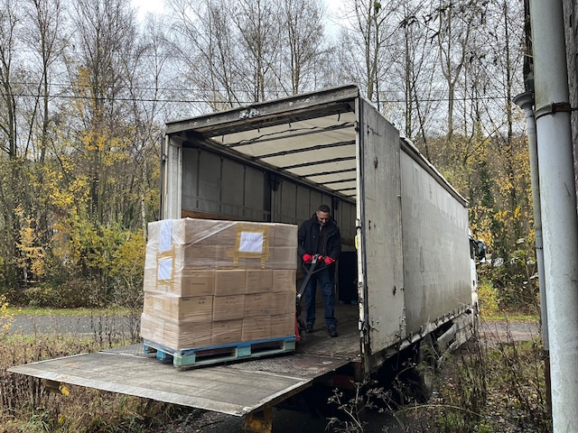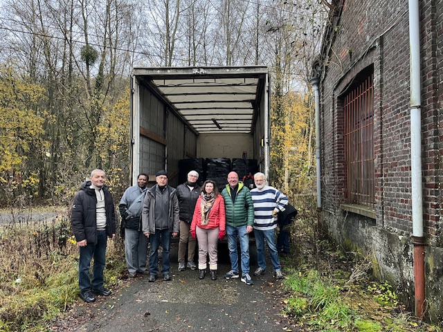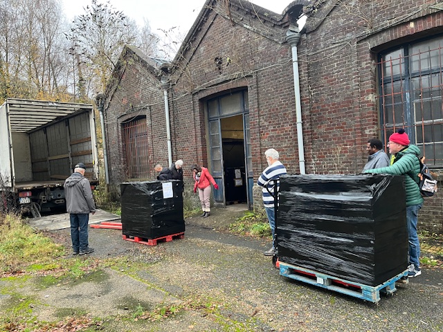 Si le jour se lève tard c’est que nous sommes en décembre. Mais le temps était doux pour charger les 10 palettes à destination de Matadi en République démocratique du Congo. 5 gagneront l’URESCO, l’Université du Réveil Scientifique du Congo, et les 5 autres iront à la faculté de Sciences et de Technologies de l’Université, toutes deux à Kinshasa. Pas de neige, pas de mains gelées, pas de pluie non plus, une météo clémente pour ce dernier envoi de l’année 2025. Le bateau appareillera du port du Havre début janvier.