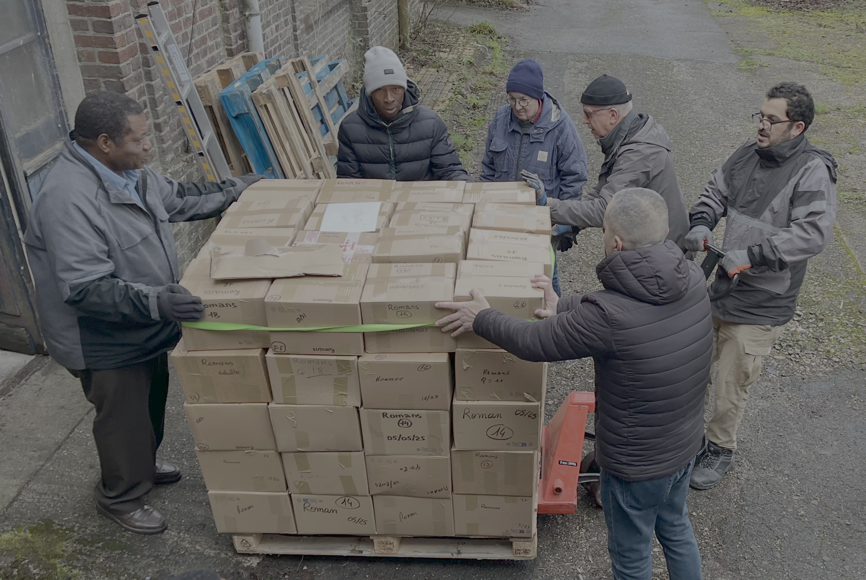 Si le jour se lève tard c’est que nous sommes en décembre. Mais le temps était doux pour charger les 10 palettes à destination de Matadi en République démocratique du Congo. 5 gagneront l’URESCO, l’Université du Réveil Scientifique du Congo, et les 5 autres iront à la faculté de Sciences et de Technologies de l’Université, toutes deux à Kinshasa. Pas de neige, pas de mains gelées, pas de pluie non plus, une météo clémente pour ce dernier envoi de l’année 2025. Le bateau appareillera du port du Havre début janvier.